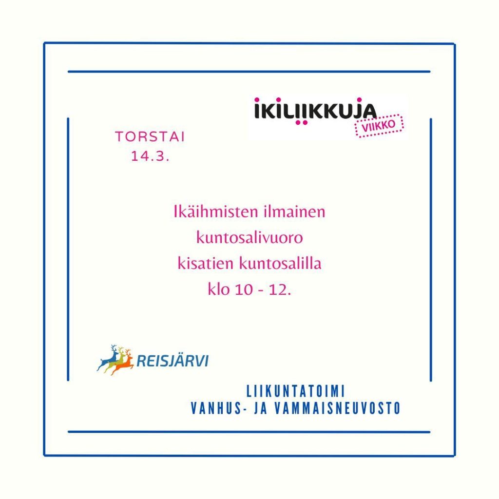 Ikäihmisten ilmainen kuntosalivuoroKisatien kuntosalilla torstaina 14.3. klo 10 – 12.