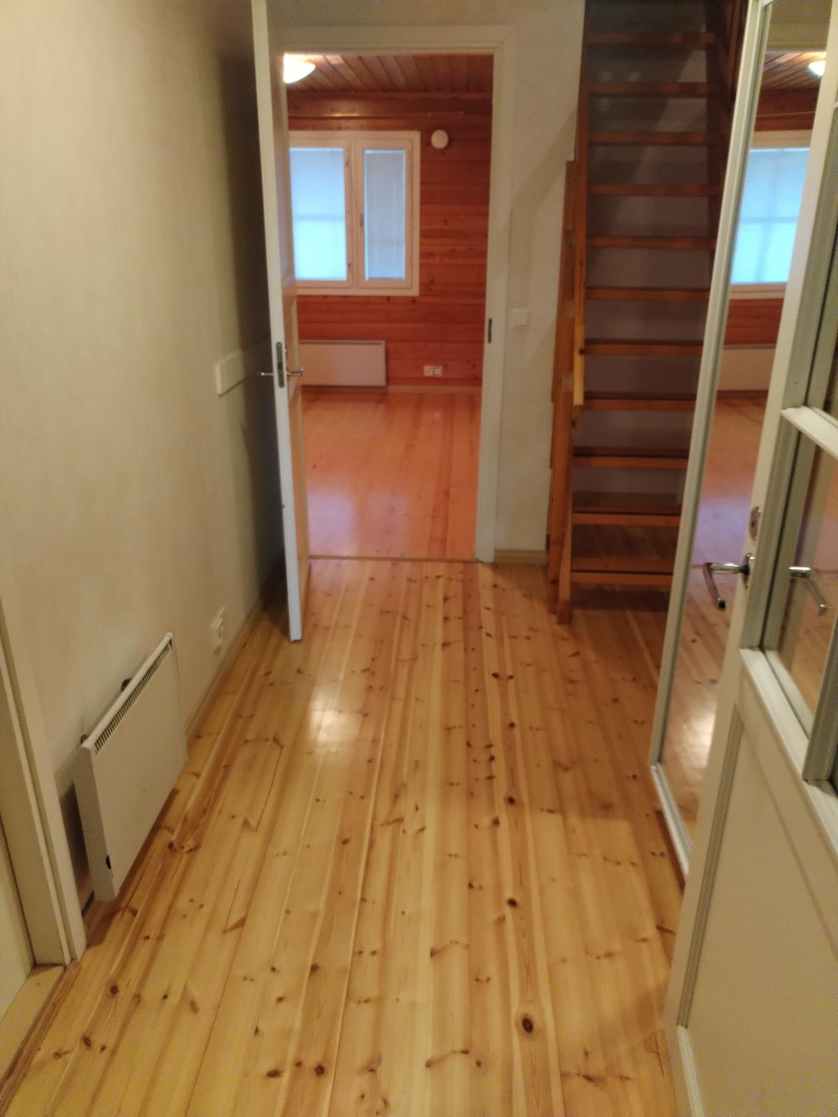 Hirsirakenteinen siisti kolmio rauhalliselta paikalta. Selkeä huoneratkaisu ja korkea sisäkatto joka antaa mukavasti tilan tunnetta. Sauna remontoitu ja suihkukaappi uusittu 2015 ja lattiat hiottu koko talosta. Ilmalämpöpumppu uusittu 2017. Iso kattoremontti tehty 2024. Ei sisäilmaongelmaa. Asunnossa on matalakattoinen parvi, toimi hienosti tavaroiden säilytyspaikkana ja miksei myös nukkumapaikkana. Katettuun terassin kulku keittiöstä. Lisäksi erillinen varastotila omalla kuistilla. Autokatoksessa on yksi autopaikka ja oven eteen mahtuu myös auto. Soita tai laita viestiä niin sovitaan näyttö.